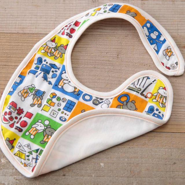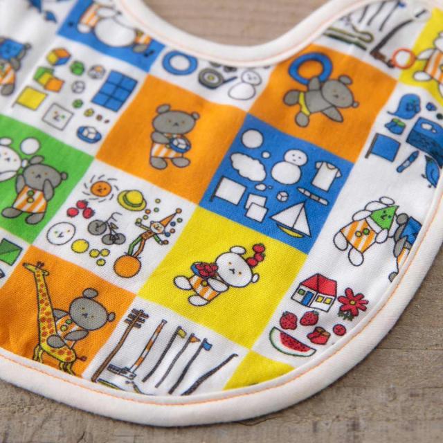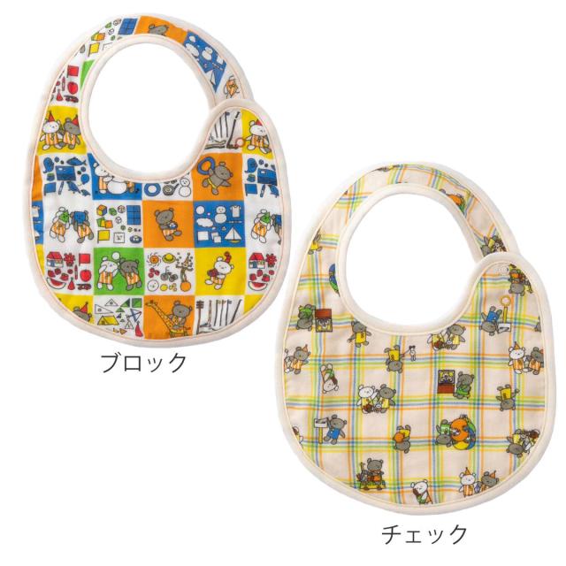 スタイ こぐまちゃんえほん 綿100% ブロック チェック ( よだれかけ ベビースタイ ビブ 前掛け ガーゼ 綿 日本製 出産祝い プレゼント キャラクター ベビーエプロン お食事エプロン コットン 赤ちゃん かわいい ギフト )