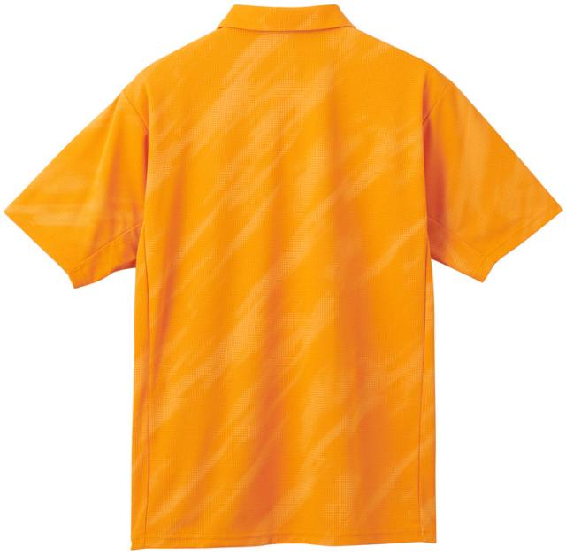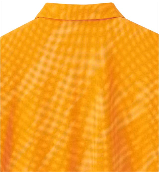 ●特徴・デザインポイント:着用時の襟の美しさを追求したミニ鹿の子ポロシャツ(セットインスリーブタイプ)。「風」と「躍動感」 をモチーフにした総柄グラフィックが、春夏らしい爽やかさと軽快さを演出。