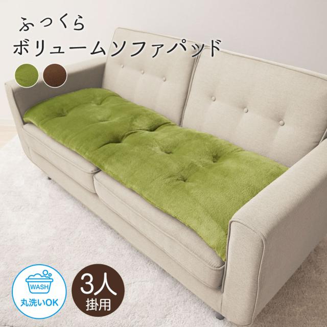 ソファパッド 3人掛け ソファカバー ソファー パット ごろ寝 クッション 吸放湿綿 うたた寝 うたたね 昼寝 クッション ふかふか ふわふわ 厚手 へたりにくい フランネル生地 丸洗い 洗える グリーン ブラウン 洗える!ふっくらボリュームソファパッド 3人掛用 200