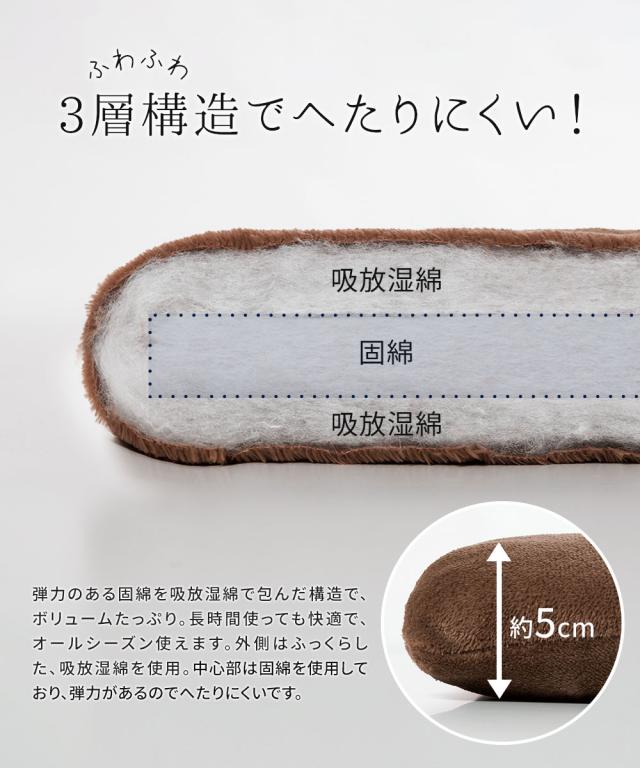 弾力のある固綿を吸放湿綿で包んだ構造で、ボリュームたっぷり。