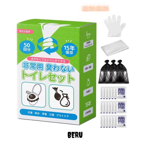 【充実なセット内容&品質保証】◆汚物袋 X50枚 ◆凝固剤 X50個、◆防臭袋 X5枚 ◆使い捨て手袋 X50枚 ◆説明書 X1枚 ?弊社より非常用トイレセットを検品しておりますが、万が一、当社の非常用トイレセットに不良などが発生した場合、またはその他の事由で交換されたい場合には、注文番号を記?の上、購入サイト内お買上けの販売店にご連絡を下さいませ。返金か新品交換をさせていただきます。