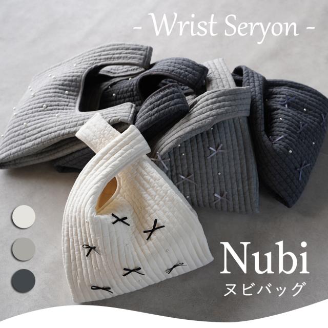 ヌビバッグ リボン パール 手首バッグ 【Wrist Seryon リストセリョン】トートバッグ サブバッグ マザーズバッグ イブル キルティング チャコールグレー グレー アイボリー 軽量 お稽古バッグ PC マチあり韓国製