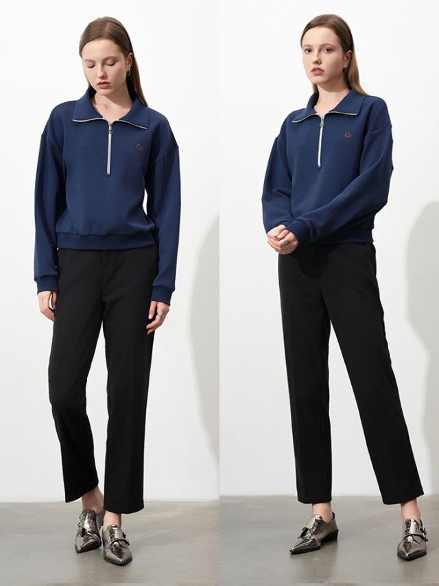カットソー 長袖 レディース プルオーバー カジュアル 上着 ポロネック スウェット ネイビー レディース 無地トレーナー ゆったり 韓国風 通勤 スポーツ 旅行 上着 d7053c0cyh5 d7053c0