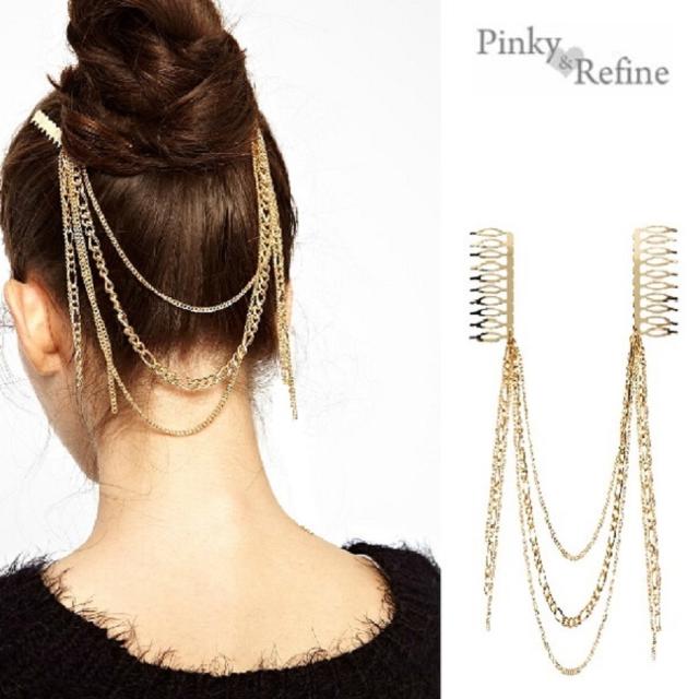 メール便送料無料 お洒落 チェーン バックカチューシャ ヘアアクセ まとめ髪アレンジ 髪飾り ヘアバンド アクセサリー クリップ 韓国ヘア アレンジヘア 盛れるアクセサリー ハーフアップ 韓国ファッション アップヘア 髪飾り 夜会巻 カチューム コーム ヘアアクセ