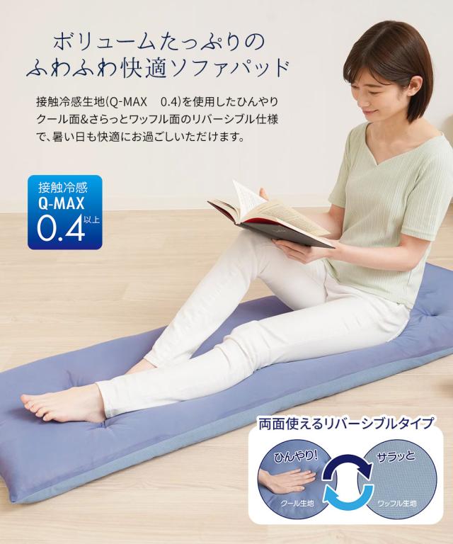 ソファパッド 3人掛け ソファカバー ソファー パット 接触冷感 Q-MAX ごろ寝 クッション 吸放湿綿 うたた寝 昼寝 クッション 厚手 夏 暑さ対策 ひんやり 冷たい 0.4 リバーシブル 丸洗い 洗える グリーン ブラウン 洗える!ひんやりボリュームソファパッド 3人掛用 202