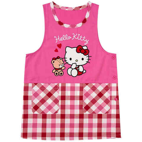 ハローキティ ラン型 エプロン 大人用 ショート丈 チュニック ポケット付 チェック柄 家事 キッチン かわいい サンリオ 送料無料