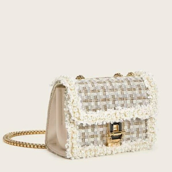 ふわふわ、ファジー、ソフト、ぬいぐるみミニフェイクパール装飾ツイードチェーンバッグ、女の子、女性、大学生、新人、ホワイトカラー仕事、オフィス、通勤、秋と冬、暖かい冬にふわふわ、ファジー、ソフト、ぬいぐるみミニフェイクパール装飾ツイードチェーンバッグ、女の子、女性、大学生、新人、ホワイトカラー仕事、オフィス、通勤、秋と冬、暖かい冬に