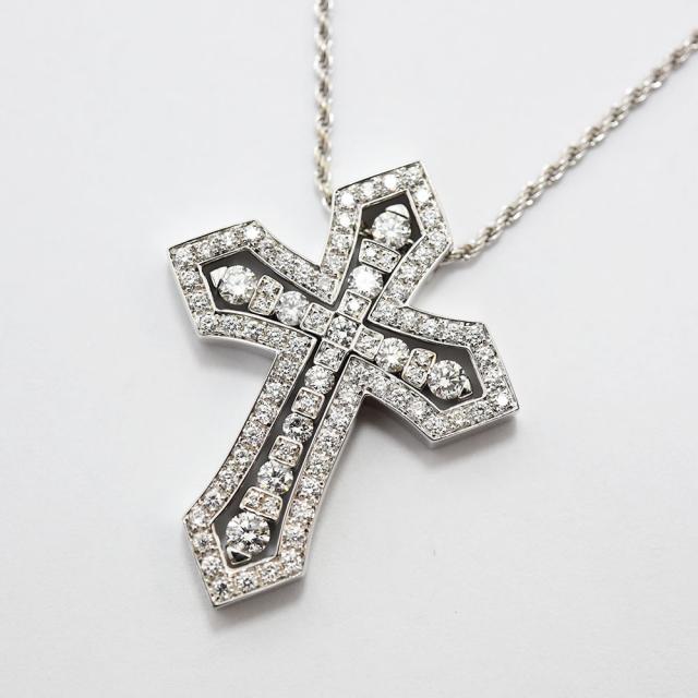 ダミアーニ ネックレス ベルエポック クラウン M DAMIANI ペンダント クロス ダイヤモンド K18WG 新品仕上げ 中古