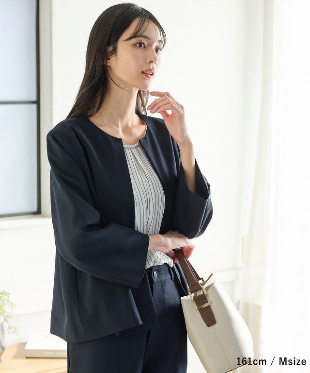 ・9分袖Aラインノーカラージャケット(品番:6730418383)