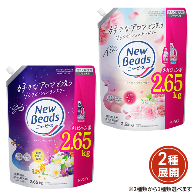 [2種類から1種類選択] ニュービーズ つめかえ用 2.65kg 洗濯洗剤 詰め替え 大容量 花王