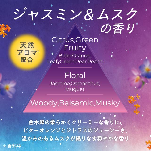 1日の終わりに行う夜洗濯にふさわしい、穏やかで温かみのあるジャスミン&ムスクの香り