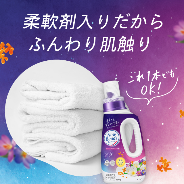 商品名 ニュービーズ つめかえ用 2.65kg ブランド ニュービーズ メーカー 花王 種類 ジャスミン&ムスクの香り、ローズ&マグノリアの香り 容量 2.65kg 成分 界面活性剤[16 %、高級アルコール系(非イオン)]、安定化剤 生産国 日本
