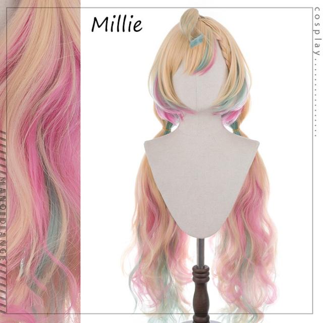 エナー・アールウェット ミリー・パフェ 遠藤霊夢 にじさんじ VTuber コスプレウィッグ ツインテール 混色 アホ毛 コミケ かつら cosplay 文化祭 祭り イペード 仮装 アニメ dp019lclcm6