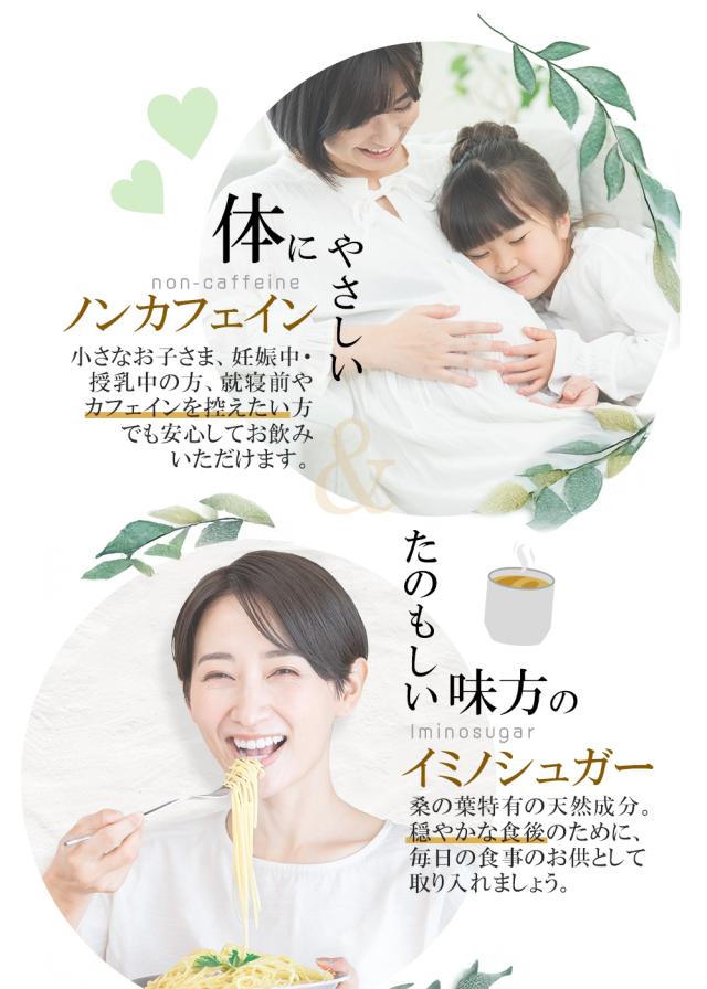 ●【桑葉特有の天然成分を含有】桑の葉には天然成分「イミノシュガー」が含まれ、毎日の穏やかな食事のお供に最適です。