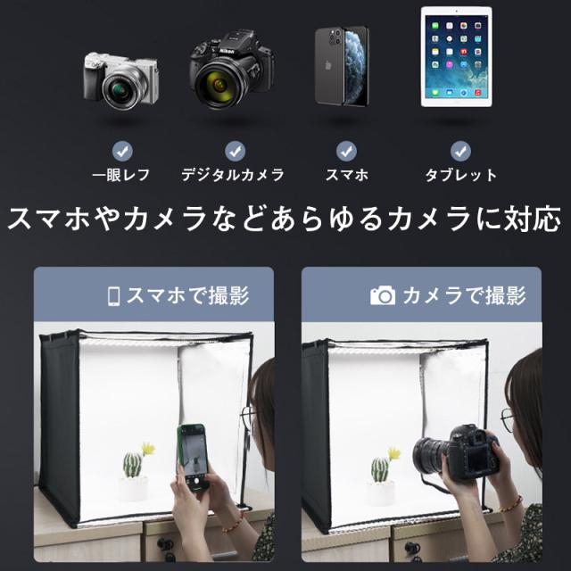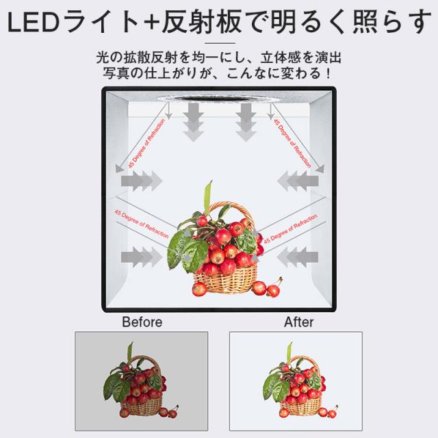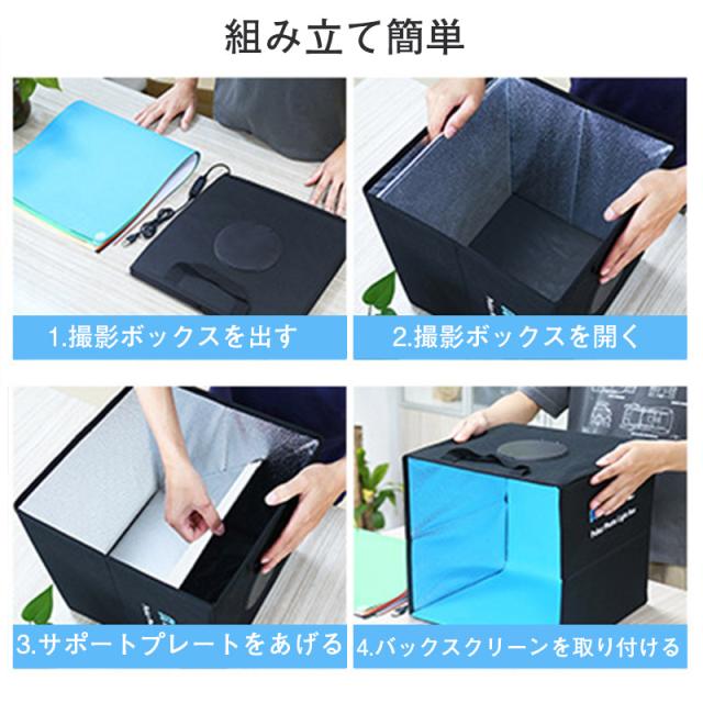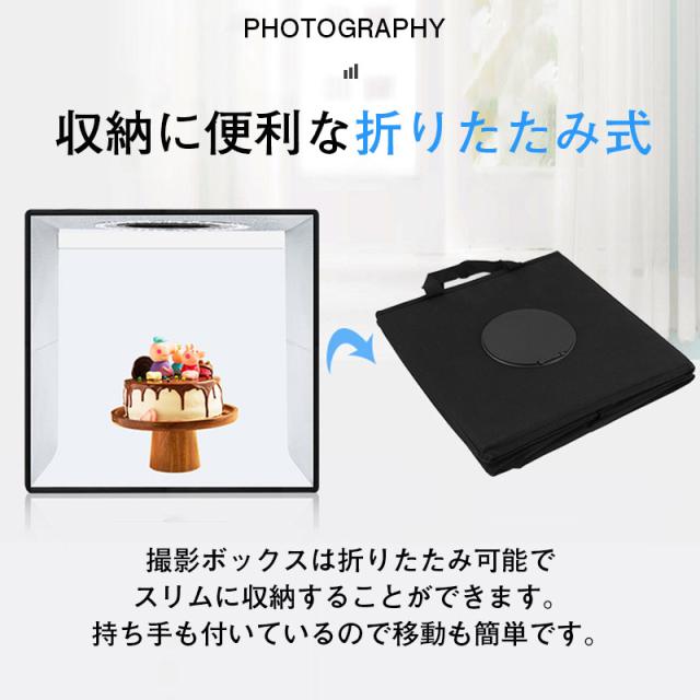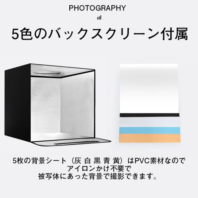 撮影ボックス 45cm 65cm 折りたたみ撮影BOX 折りたたみ式スタジオ 簡易スタジオ LED照明 調光 USB給電 背景5色付属 光色3種類