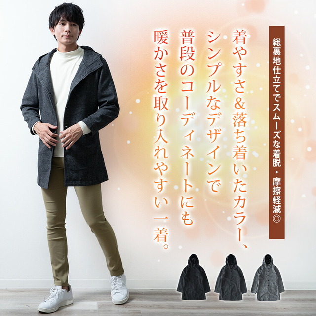コート メンズ ウール フード フーテッドコート 秋冬 暖かい 細身 スリム ミドルコート おしゃれ グレンチェック ツイードグレー アウター 無地 ツイードブラック キレカジ 冬 防寒 全3色 黒 ミドル丈 長袖 プレゼント お洒落 ブルゾン