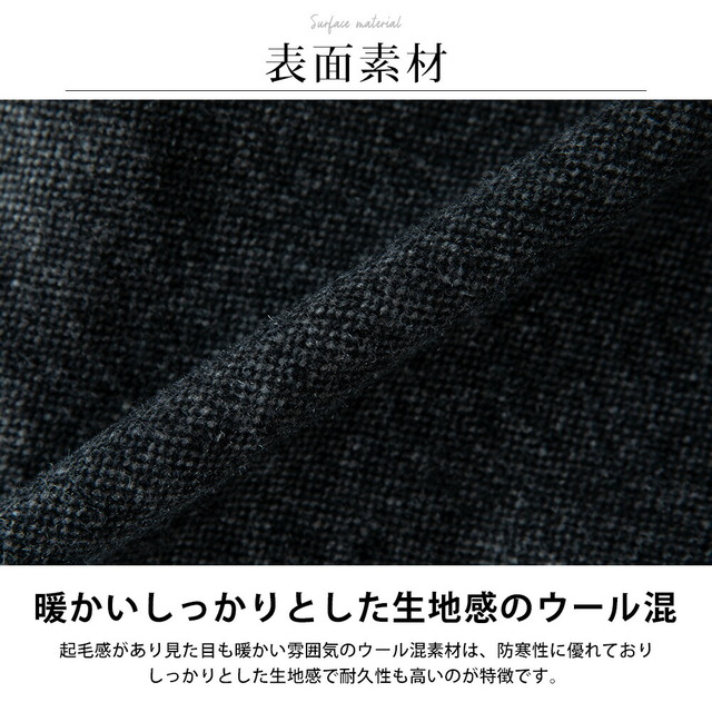 | (表地/本体)ポリエステル87% ウール13% (裏地/本体)ポリエステル100% |