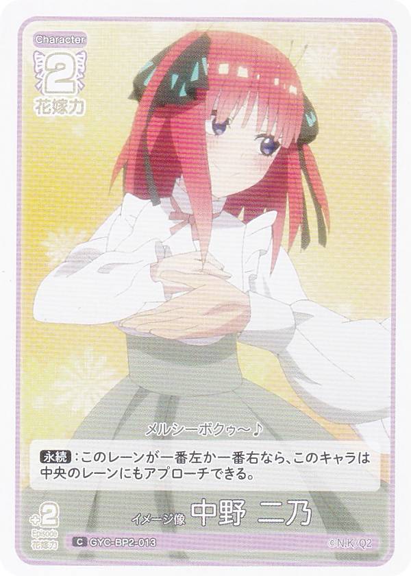 五等分の花嫁カードゲーム GYC-BP2-013 イメージ像 中野 二乃 (C コモン) ブースターパック vol.2 かけがえのない存在