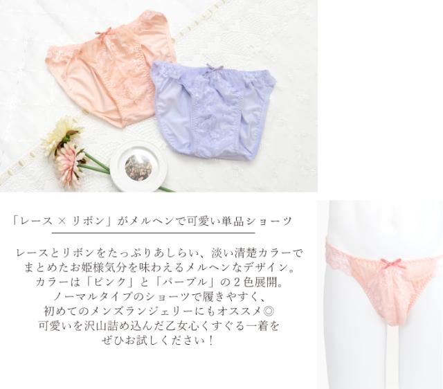 商品名(商品番号):レース リボン 淡い清楚カラー メルヘン お姫様 メンズランジェリー M-4L メンズ体型用 単品 ショーツ (jm-1257-s)