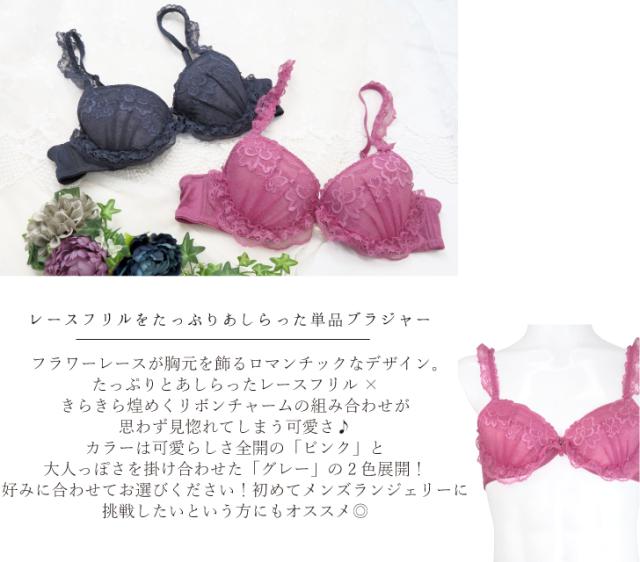 フラワーレース レースフリル 可愛い 人気 オススメ A85-A105 メンズ体型用 パッド入り 単品 ブラジャー (JM-1260-B)[メール便不可]【 男ブラ メンズブラ 男性用ブラ メンズブラ 男性用ブラ 大きいサイズ 男性用ブラジャー 下着 ブラ 男性用下着 かわいい】