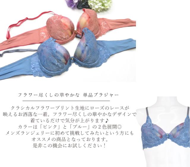 商品名(商品番号):フラワープリント ローズレース フラワー尽くし 華やか A85-A105 メンズ体型用 パッド入り 単品 ブラジャー (jm-1259-b)