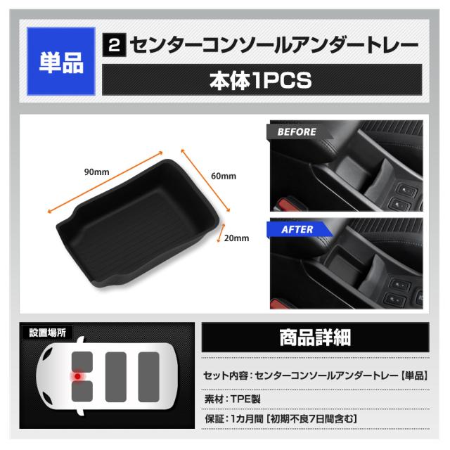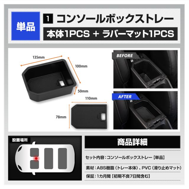 単品[1]コンソールボックストレー [1]本体 1PCS [2]ラバーマット[滑り止めマット] 1PCS 単品[2]センターコンソールアンダートレー [1]本体 1PCS |