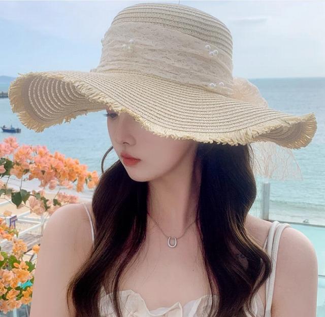 帽子 麦わら帽子 レディース ストローハット ハット 日よけ つば広 日焼け対策 通気性 紫外線対策 レース 大人可愛い リボン 送料無料
