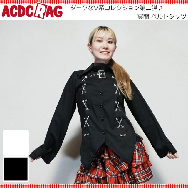 ACDC RAG エーシーディーシーラグ 冥闇 ベルトシャツ 長袖 原宿 原宿系 ファッション V系 ダーク パンク ロック ベルト レディース ブラック ホワイト pe-32004