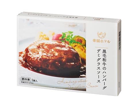 ひとつずつ丁寧に仕上げたハンバーグに、帝国ホテル伝統のデミグラスソースを合わせた逸品です。一口ごとに感じられる黒毛和牛の深い味わいをお楽しみください。保存方法:-18℃以下にて保存。栄養成分(推定値):エネルギー 351kcal/たん白質 20.5g/脂質 23.0g/炭水化物 15.4g/食塩相当量 1.4g※1食(190g)当たり