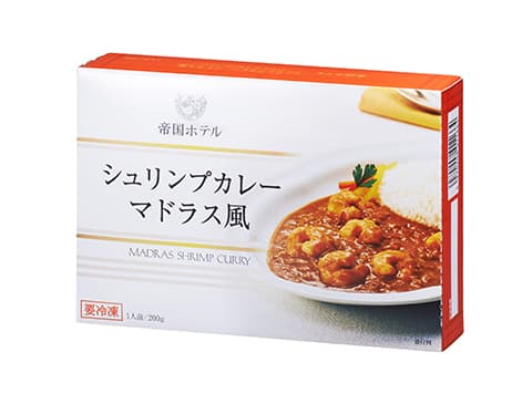 帝国ホテルのカレーは粒々の食感を楽しんでいただくために、みじん切りの野菜をソースに残しているのが特徴です。味わい深く仕上げたカレーにプリプリのエビがたっぷり入ったシュリンプカレーです。なお、カレーソースの中の黒い粒はキャラウェイシードという香辛料ですので安心してお召し上がりください。保存方法:-18℃以下にて保存。栄養成分(推定値):エネルギー 178kcal/たん白質 10.4g/脂質 7.8g/炭水化物 16.6g/食塩相当量 2.2g※1食(200g)当たり