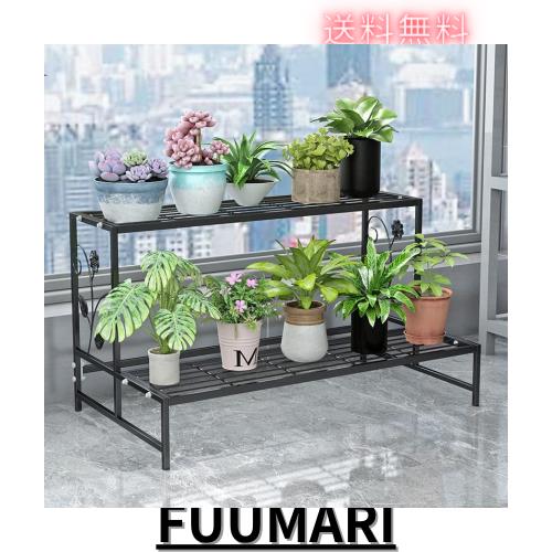 Floralies プランタースタンド アイアン 鉄製 アイビースタンド ガーデンラック 屋外 錆びない 2段 3段 横型 花台 フラワーラック 室内