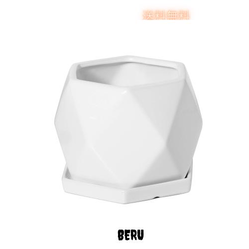 【上質な材質】高品質の陶器で仕上げられで、高級感があります。この白い 植木鉢は耐用性が高いです。六角形のデザインはシンプルながら独特で、北欧風が溢れています。