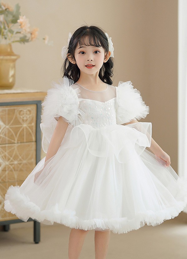 ワンピース 短袖 キッズドレス ピアノ 発表会 子供ドレス キッズ 子ども 可愛い 女の子 女児 ミディ丈ドレス 合唱 披露 ホワイト ピンク 肩出し ステージ衣装 演出 演奏会 音楽会 パーティー 100 110 120 130 140 150 dd002m5m5m6