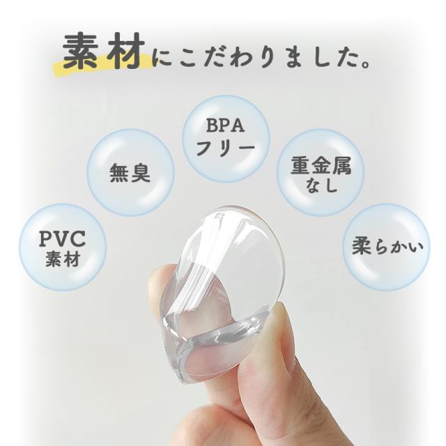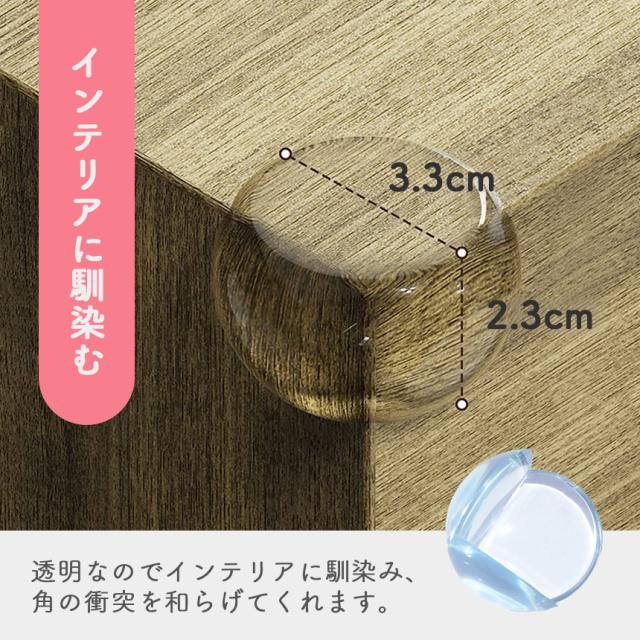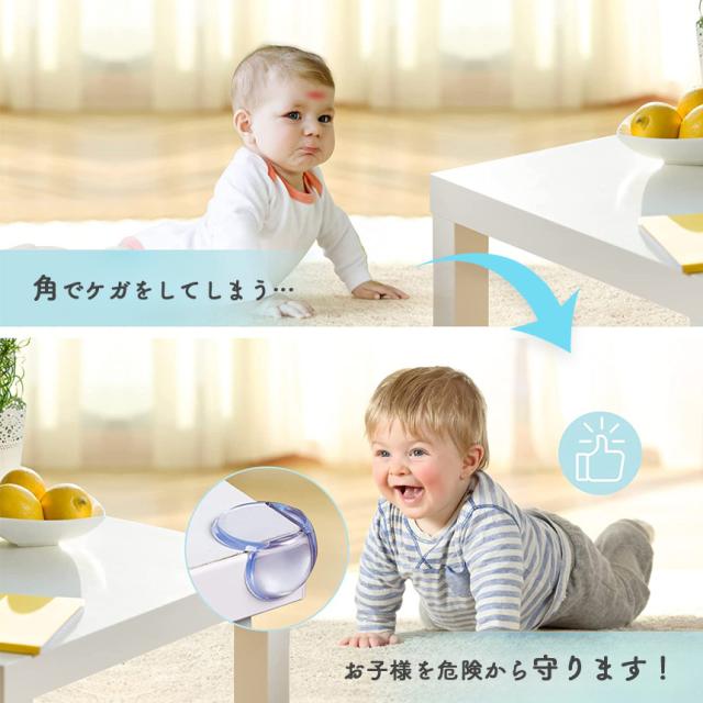 頭を撃っても痛くない!守りたいその笑顔 危ない角をしっかりと保護しケガ防止!透明だから家具のデザインも保護!●頭や顔に傷が残るほどの怪我をしないかといった不安を抱える親御さんも多いのではないでしょうか。医師監修の基に作られたコーナーガードは、優れたクッション性があり、しっかりと衝撃をガードしてくれるのが特徴です。本製品は丸型設計により一般的な四角形のものに比べて取れにくい形状をしております。