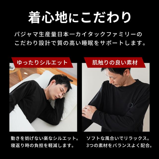 | ・肩・腰部分に磁石を配置 個人差のあるツボを抑えるのではなく、効果が出やすい場所に永久磁石を配置しております。 ・着心地にこだわりパジャマ生産量日本一カイタックファミリーのこだわり設計で質の高い睡眠をサポートします。 耐久性に優れた磁石とテープを採用しているため、ご家庭の洗濯機で毎日お洗濯することができます。 | |