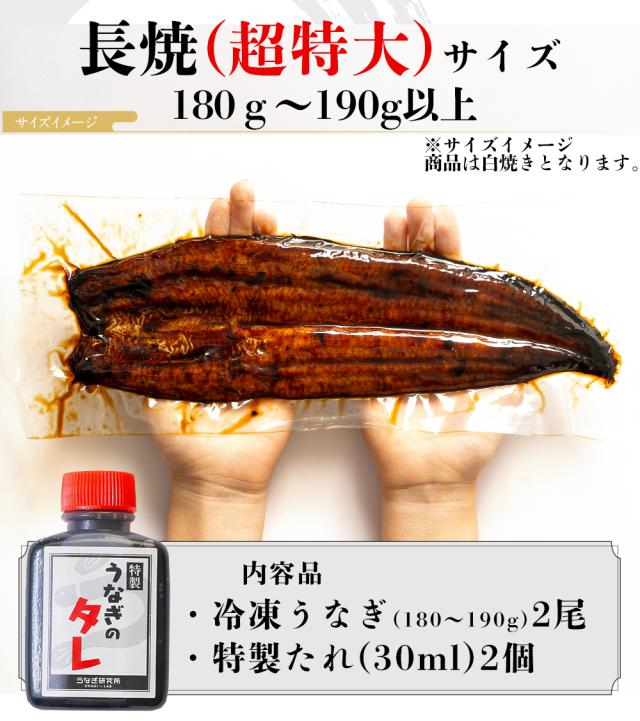 うなぎ 白焼き 超特大(180〜190g) 2尾 国産 三河一色産 炭火手焼き 白焼 タレ付 お取り寄せ 土用の丑 お中元 お歳暮 母の日 父の日 お祝い プレゼント 個包装 真空パック