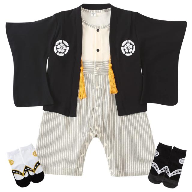 Comfort U ベビー服 袴 ロンパース 男の子 羽織 袴カバーオール 袴セット 子供服 袴風 和装 着物 靴下付き 赤ちゃん 新生児 フォーマル