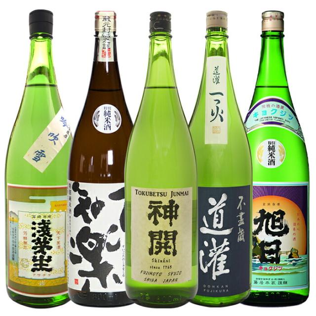 送料無料 晩酌にオススメ!滋賀の地酒 特別純米酒飲み比べセット(神開 道灌 松の花 浅茅生 旭日) 1.8L瓶×5本 送料無料