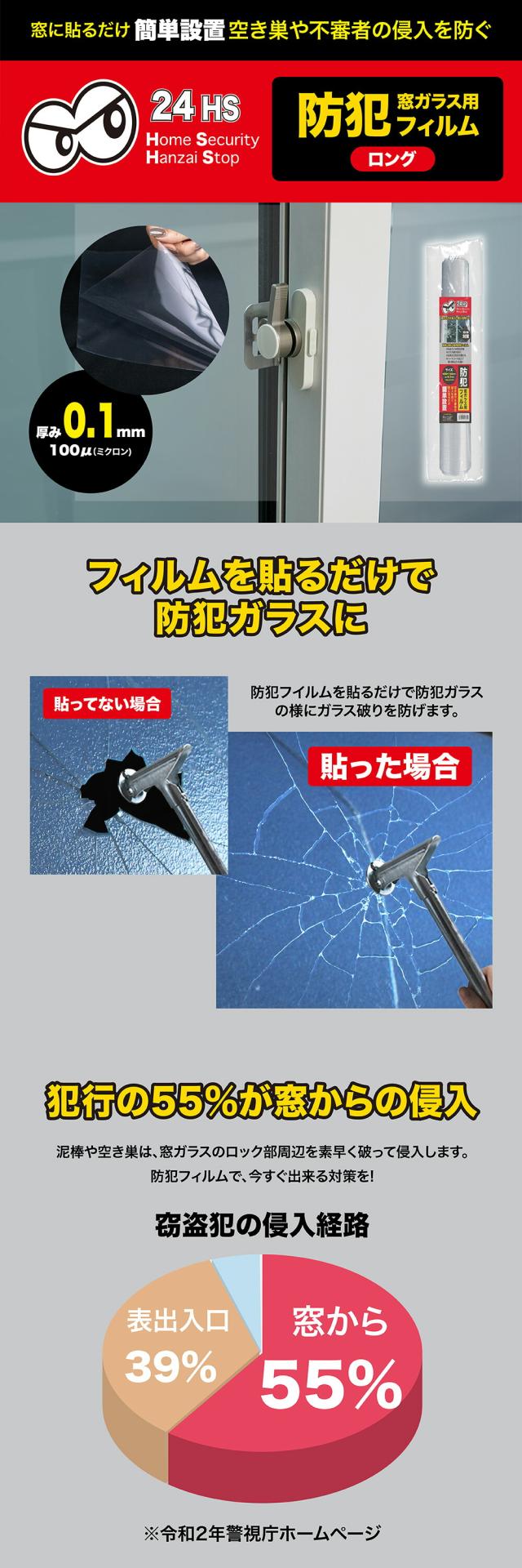 窓ガラス用 防犯フィルム 厚み0.1mm ロング 1枚 貫通防止 窓ガラスフィルム 空き巣対策 飛散防止 ガラスフィルム 防犯フィルム 防犯対策 防犯グッズ 災害対策