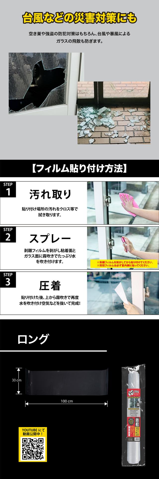 商品名:窓ガラス用防犯フィルム0.1mm ロング1枚入