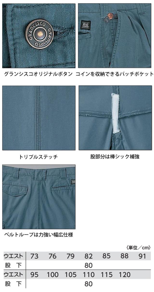 GRANCISCO グランシスコ ツータックカーゴパンツ GC-2013 タカヤ商事 作業服 春夏 73〜88cm