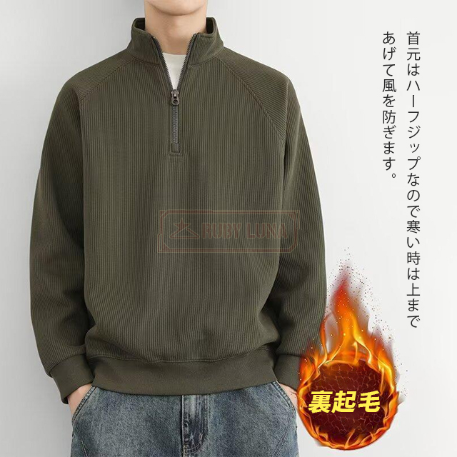 最安挑戦 春新作 送料無料 新作 トップス メンズ ハーフジップ プルオーバーパーカー ゆったり 長袖 秋冬 厚手 裏起毛 防寒 暖かい 立ち襟 ニットトレーナー カジュアル スウェット ゴルフウェア ポロシャツ 秋物 冬物