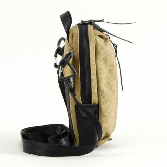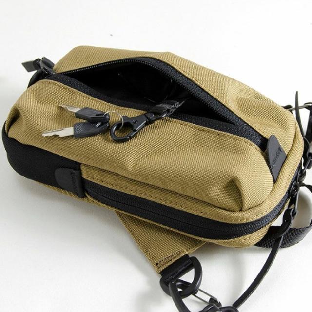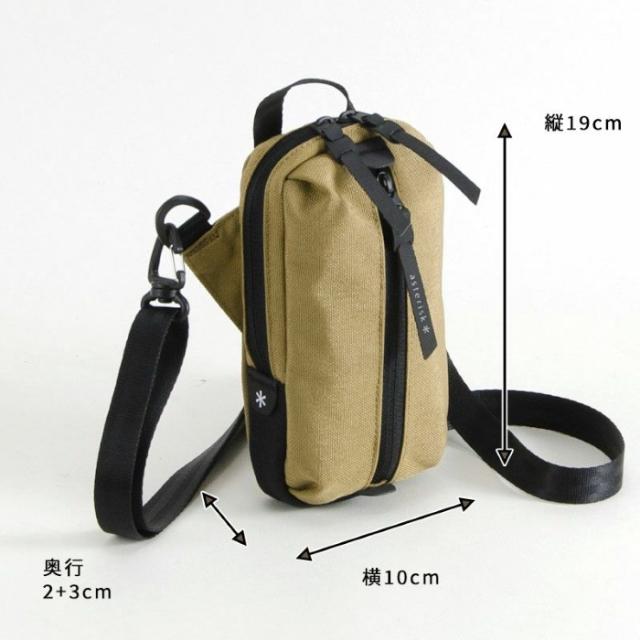 スマートフォンサイズの本体には必要最低限な小物を収納し持ち歩ける肩かけショルダー付きポーチ。