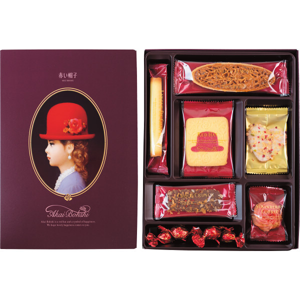 (レッドハット×2、ラングドシャロール×2、バニラアーモンド×2、ストロベリークッキー×2、チョコクランチ×2、ナッツベリーハート×2、ホワイトボール アップル風味×5)