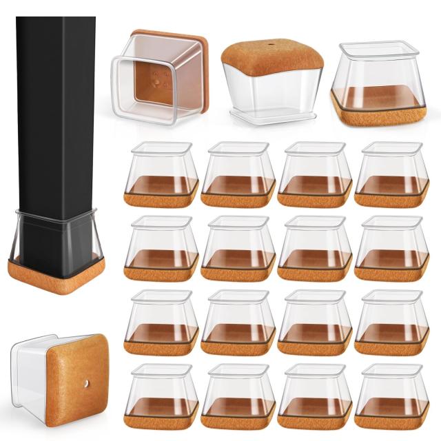 ◆商品名:椅子脚カバー四角 椅子の脚カバー椅子脚カバーシリコン 家具足 傷防止 防音 滑り止め 角脚用フェルト巻16個 透明 L-27~36mm