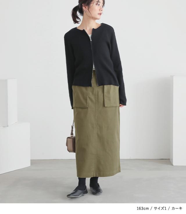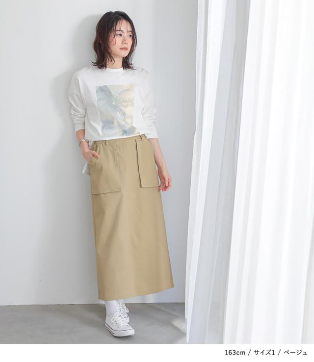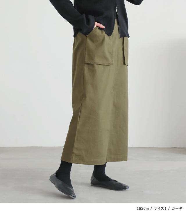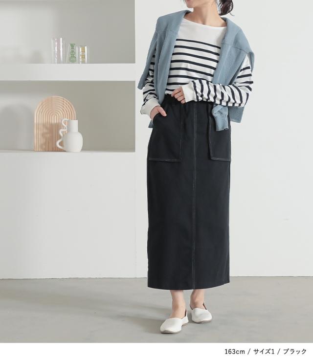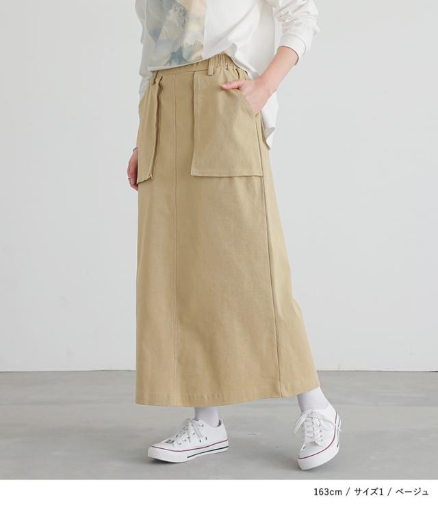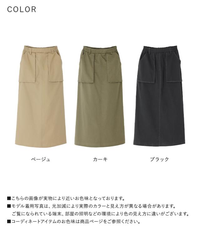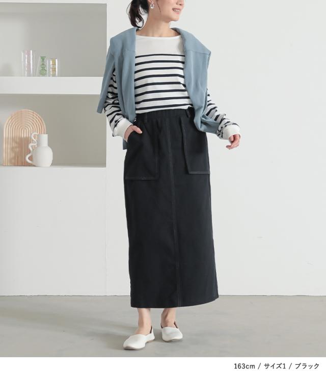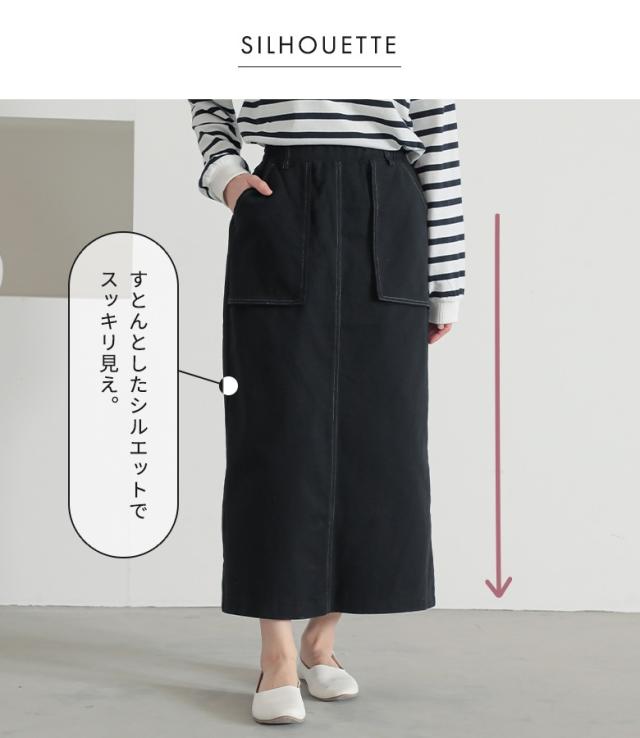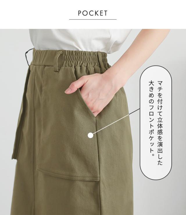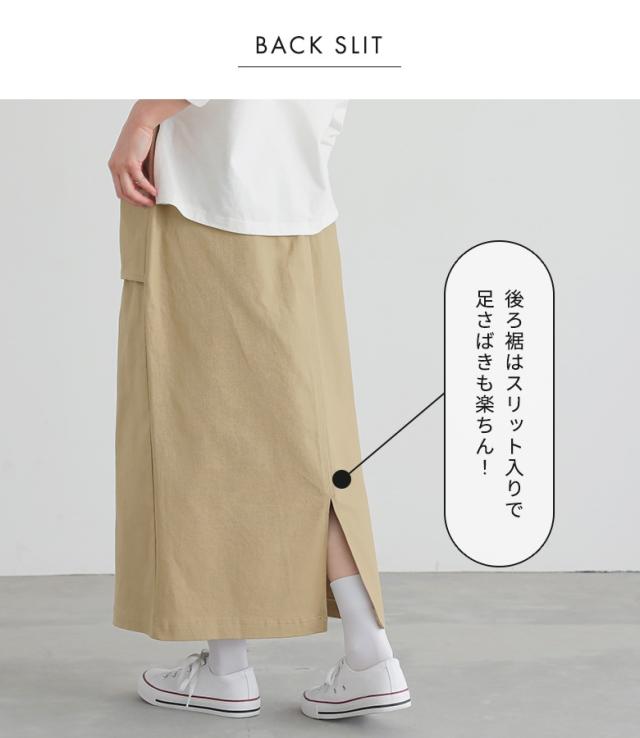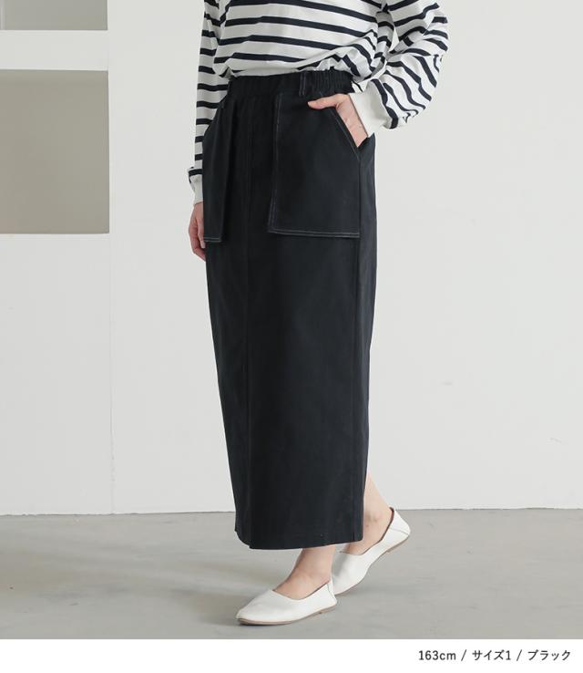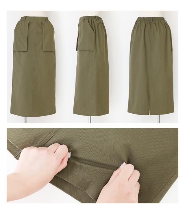 『立体ポケットナロースカート』【メール便不可】【20】[スカート レディース ボトムス ナロースカート ロング丈 ストレッチ ウエストゴム ポケット 綿混 スリット スッキリ見え 春]