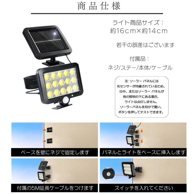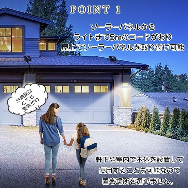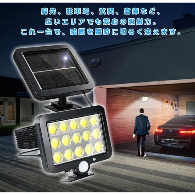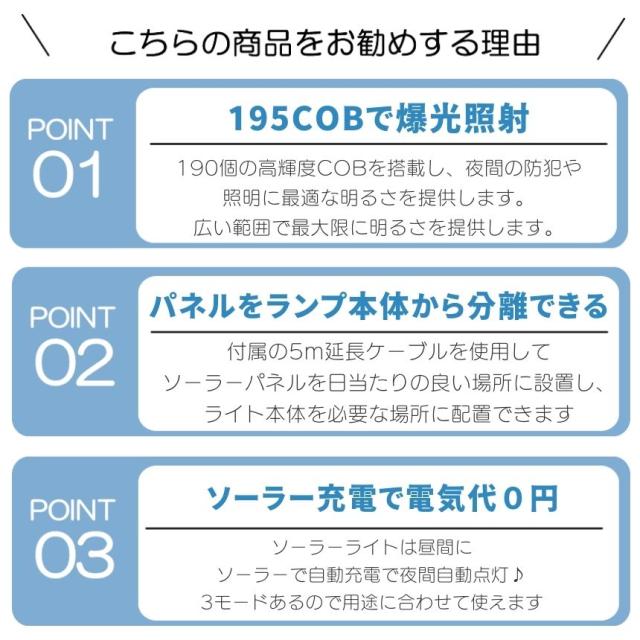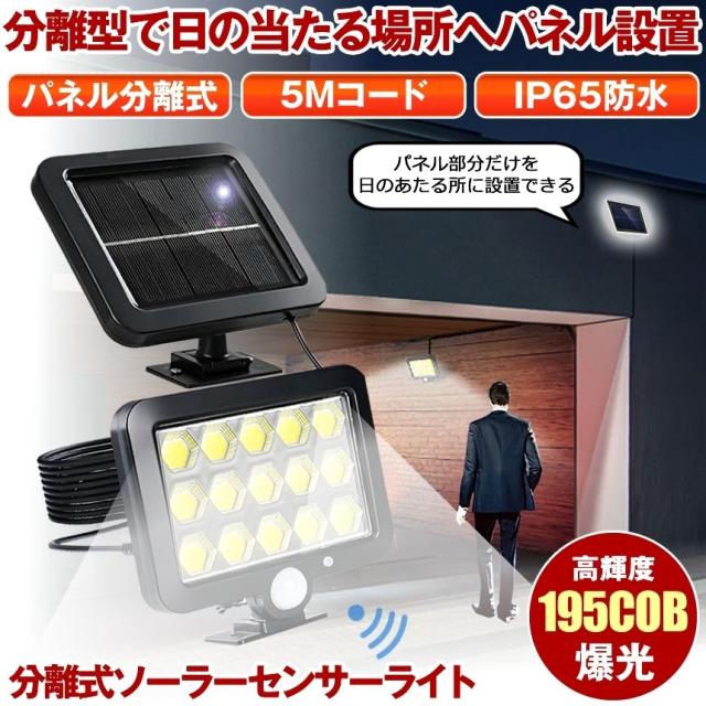ソーラーライト 屋外 防水 センサーライト ガーデンライト ソーラーセンサーライト 分離型 分離 パネル 防犯ライト 防災ライト 人感センサーライト 195 COB LED