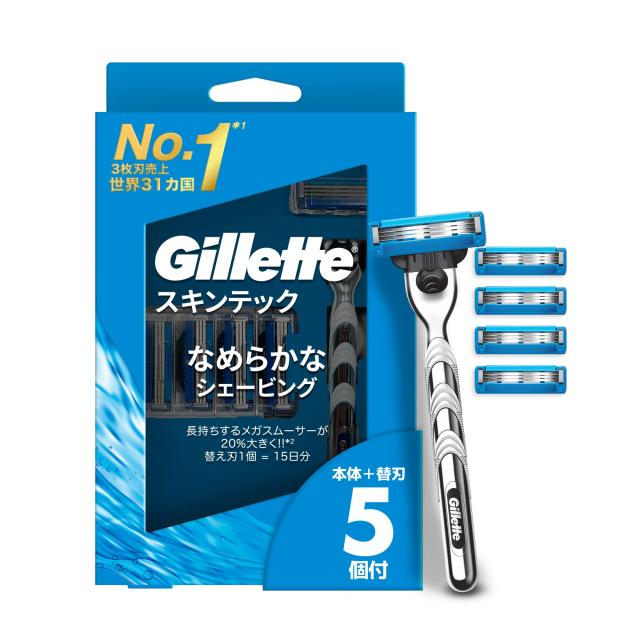ジレット 髭剃り 本体 替刃 5個 カミソリ 剃刀 メンズ 肌に優しい スキンテック