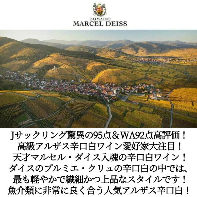 Jサックリング驚異の95点&WA92点高評価! 高級アルザス辛口白ワイン愛好家大注目! 天才マルセル・ダイス入魂の辛口白ワイン! ダイスのプルミエ・クリュの辛口白の中では、 最も軽やかで繊細かつ上品なスタイルです!魚介類に非常に良く合う人気アルザス辛口白!