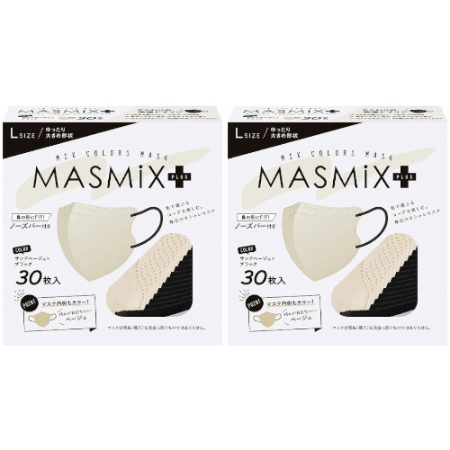 【2個セット】MASMiXプラス(マスミックスプラス) サンドベージュ×ブラック 30枚(4987601603655-2)